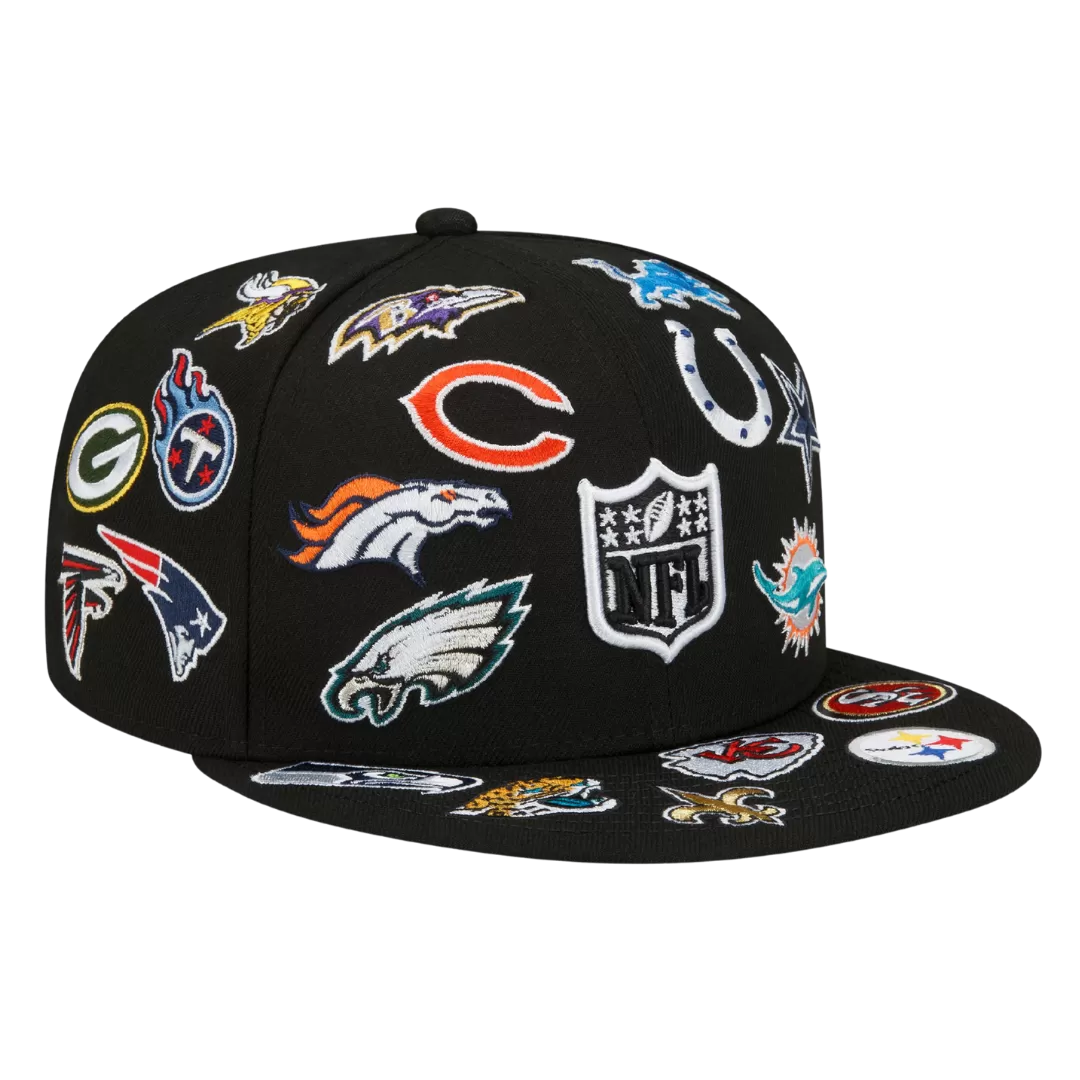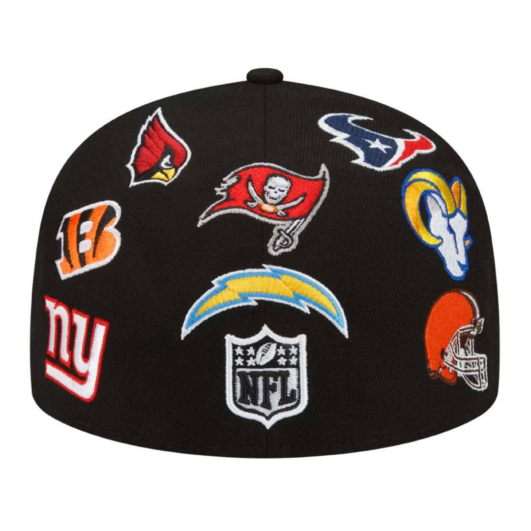 Now you can show off your fandom wherever you go when you get the NFL All Over Team Logo 59Fifty fitted hat from New Era. You’re a massive football fan and love collecting anything you can that shows your die-hard loyalty. This hat features distinctive NFL Team Logo’s surrounding it. This NFL All Over Team Logo 59Fifty fitted hat will help to show you support the NFL.